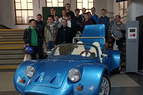 Przy prototypie samochodu.