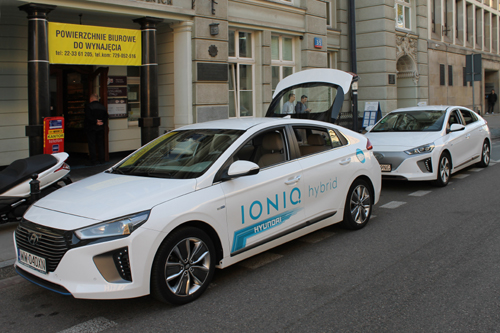 Najnowsze samochody firmy Hyundai czekają na prezentację przed Domem Technika NOT.